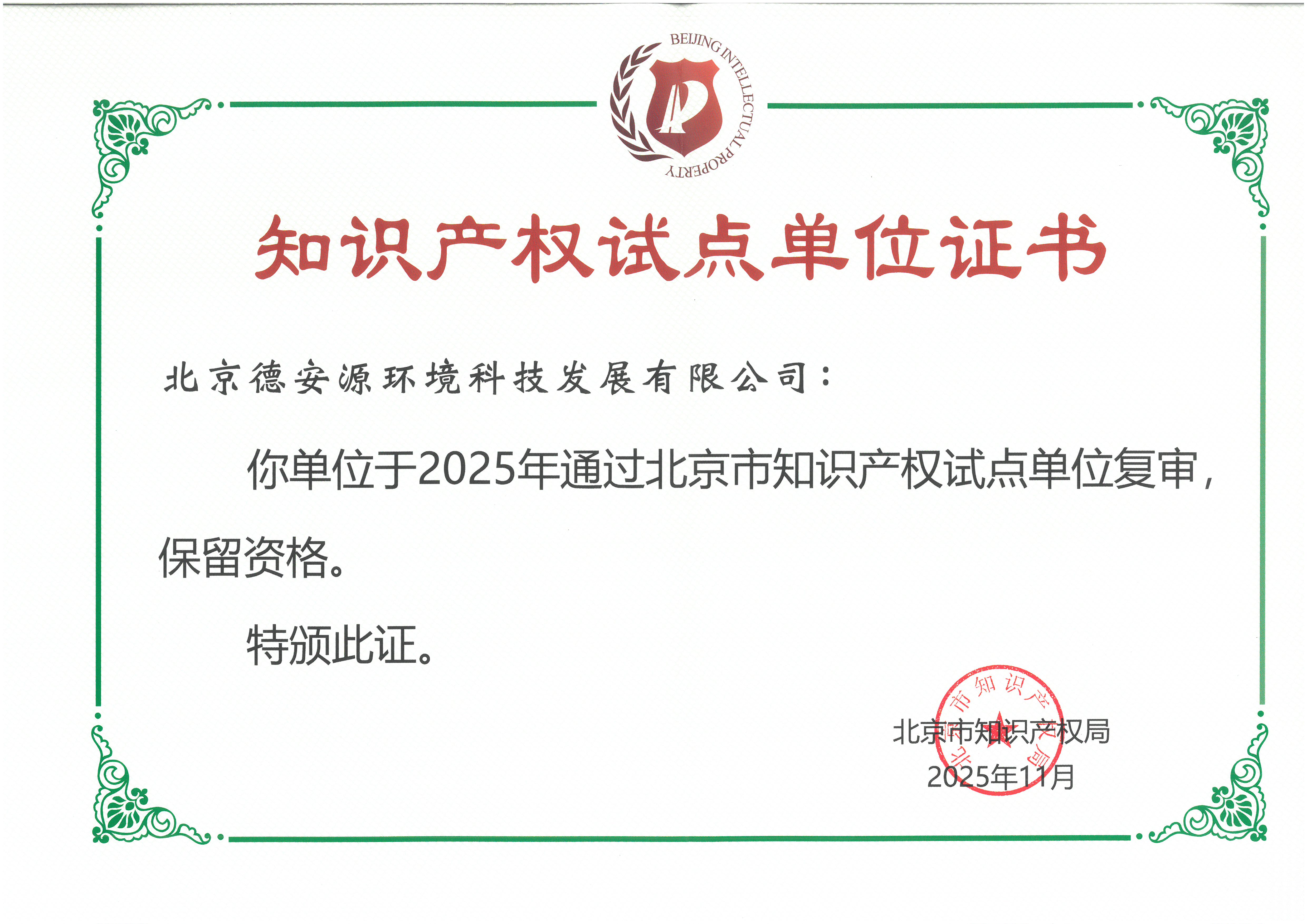 知識產權試點單位證書