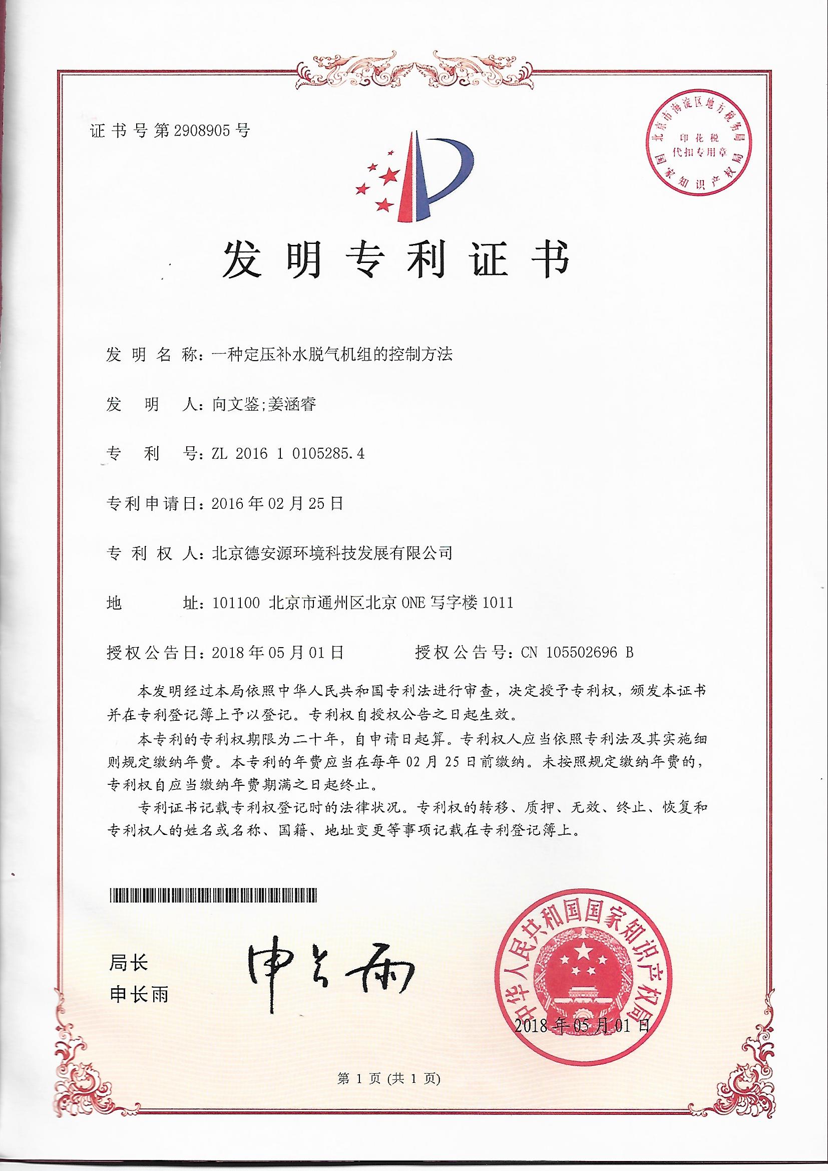 一種定壓補水脫氣機組的控制方法